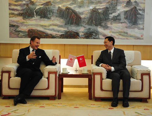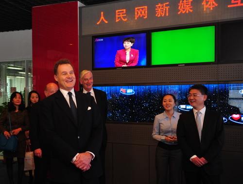 Harmsworth had a friendly talk with Yan Xiaoming, Deputy Editor-in-Chief of People's Daily. After the talk, Harmsworth watched the presentation of the "Foreign Media" Channel of People's Daily Online and toured People's Daily Online in the company of Liao Hong, CEO and Editor-in-Chief of People’s Daily Online.