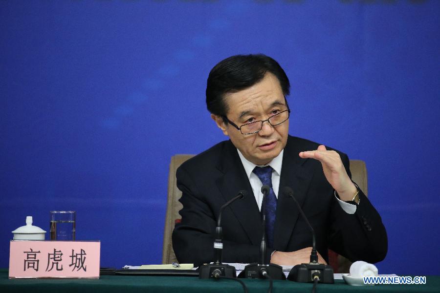 | Chinese Minister of Commerce Gao Hucheng gives a press conference for the third session of China's 12th National People's Congress (NPC) on commercial development and opening up, in Beijing, capital of China, March 7, 2015. (Xinhua/Xing Guangli) |