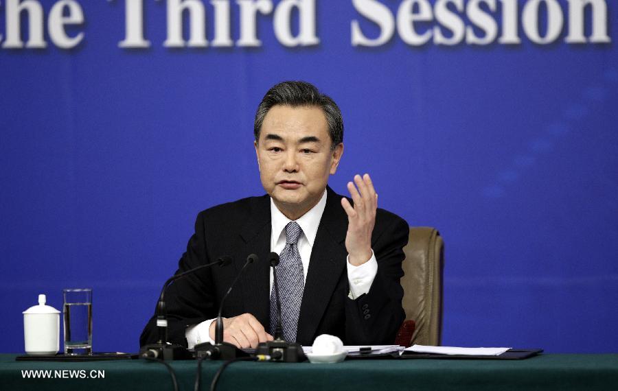 Chinese Foreign Minister Wang Yi gives a press conference for the third session of China's 12th National People's Congress (NPC) in Beijing, capital of China, March 8, 2015. (Xinhua/Yin Gang)