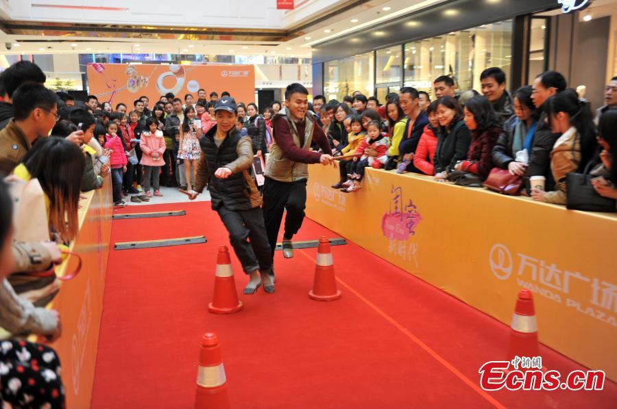 Men wearing pairs of women's high heels compete in an obstacle race at a shopping mall in Fuzhou, East China’s Fujian province, March 8, 2015. International Women's Day on March 8 dates back to the beginning of the 20th Century and has been observed by the United Nations since 1975. The UN writes that it is an occasion to commemorate achievements in women's rights and to call for further change. (Photo: China News Service/Lv Ming)
