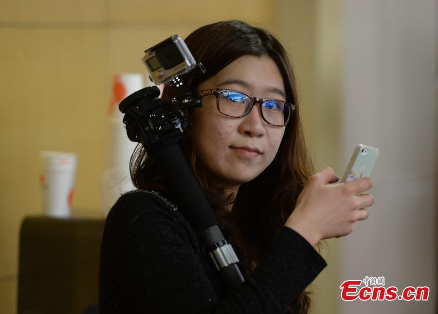 A well-equipped reporter attends a press conference during the Third Session of the 12th National People's Congress in Beijing, March 8, 2015. International Women’s Day is annually held on March 8 to celebrate women’s achievements throughout history and across nations. (Photo: China News Service/Hou Yu)