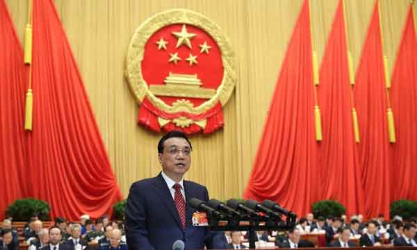 Chinese Premier Li Keqiang delivers the government work report during the opening meeting of the third session of China's 12th National People's Congress (NPC) at the Great Hall of the People in Beijing, capital of China, March 5, 2015. (Xinhua/Pang Xinglei)
