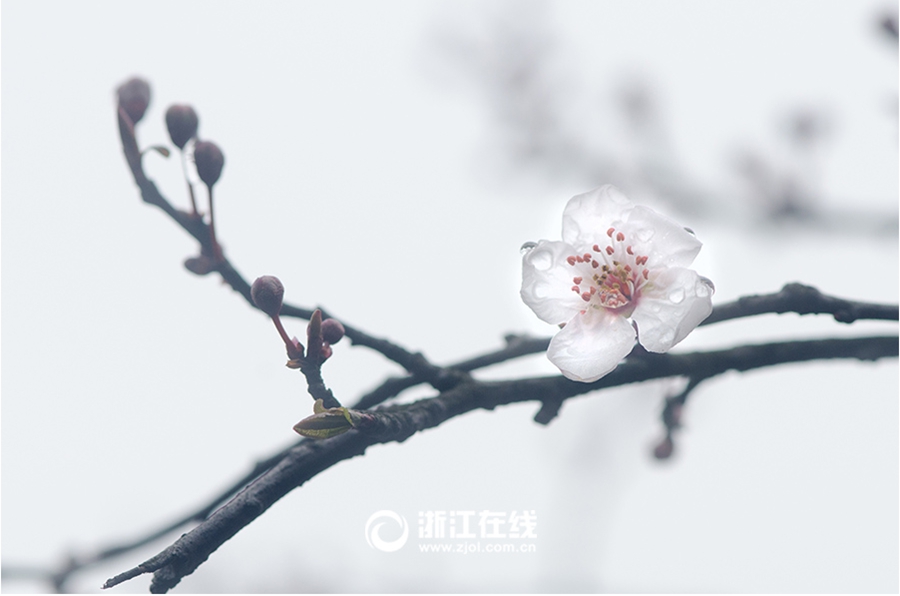 Oriental cherry blossoms after the rain. (Zhejiang Oline/Ni Yanxiang)