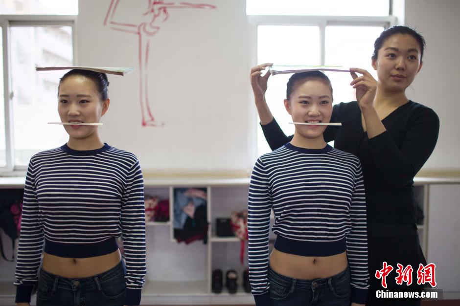 Hao Yushan and her twin sister Hao Jieshan always attract attention in a training school in Shanxi. They were born in 1996. Hao Yushan came to the world four minutes earlier than Hao Jieshan. Their close friends can easily distinguish them but other classmates or their teachers cannot. They resemble so much with nearly same figure. Becoming flight attendants has been their dreams since they were little girls. (Chinanews.com/Zhang Yun)