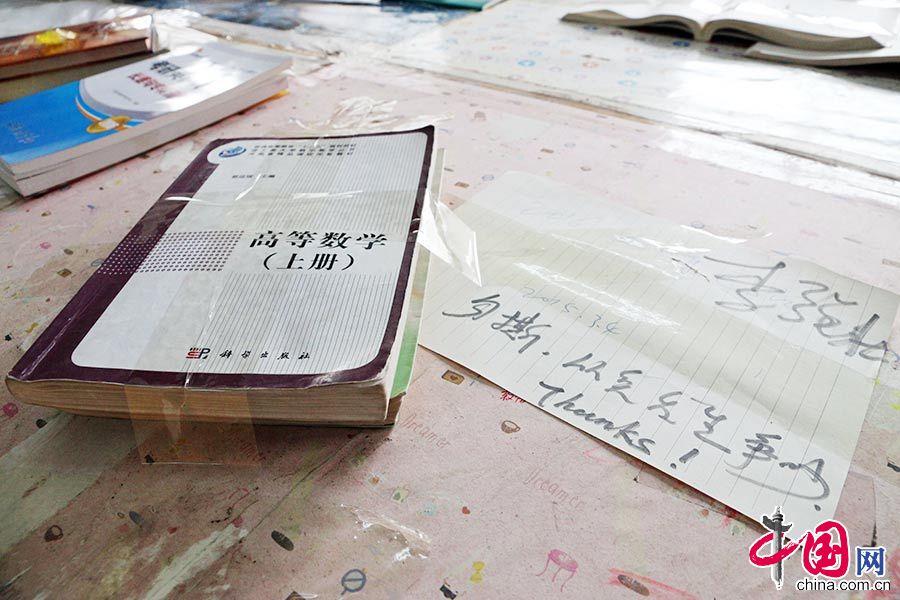 Students stick books on the table and leave a message "Don't touch it, avoid quarrels."(Photo/China.com.cn)