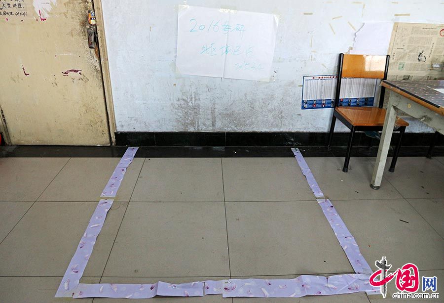 Students mark their "territory" with paper. (Photo/China.com.cn)