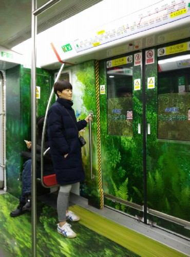 The 3D peach garden in Hangzhou subway. (Photo/Xinhua)
