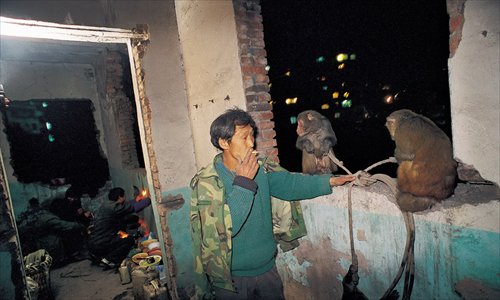 | Buskers and monkeys usually stay in run-down rooms in big cities. (Photo: Ma Hongjie) |