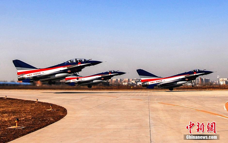The Bayi Aerobatic Team flies in formation at the air show. (CNS/ Zhang Pengyan)