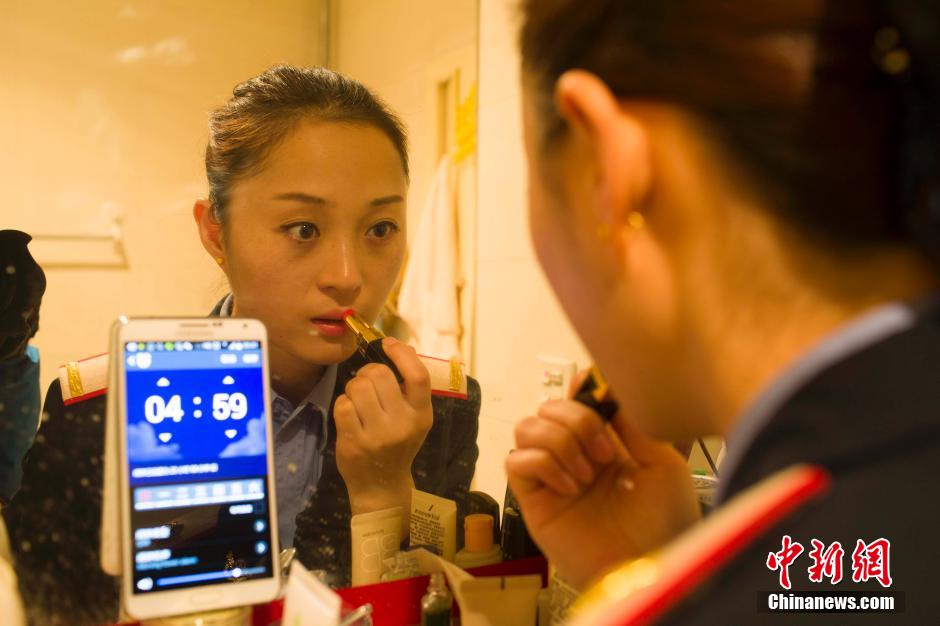 Li Yaqin gets up and makes up in the early morning. (CNS/Zhang Yun)
