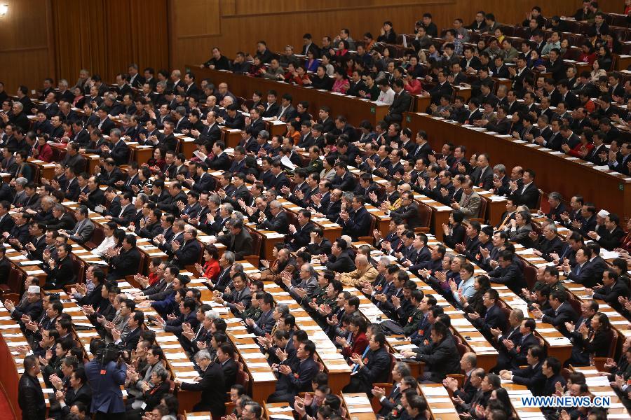 The closing meeting of the third session of the 12th National Committee of the Chinese People's Political Consultative Conference (CPPCC) is held at the Great Hall of the People in Beijing, capital of China, March 13, 2015. (Xinhua/Wang Shen)