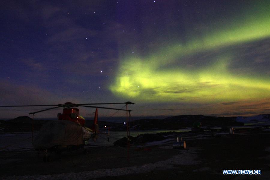 Photo taken on March 3, 2015 shows the scenery of aurora at the Zhongshan Station, a Chinese scientific research base in Antarctica. (Xinhua/Wang Gangyi)