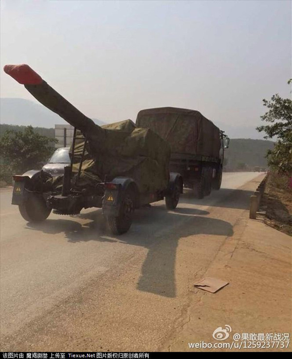 Long queues of military trucks and missile carriers and fighter jets are said to have stationed on the China-Myanmar border on March 15, 2015. [Photo: weibo account of "guo gan zui xin zhan kuang"]