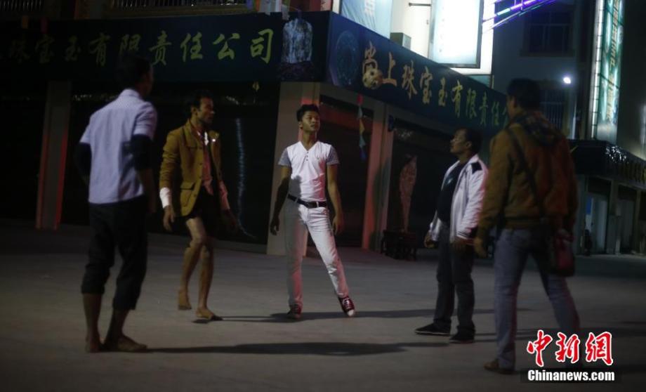 Some Burmese gem merchants play football in the market. (CNS/Zhang Hao)
