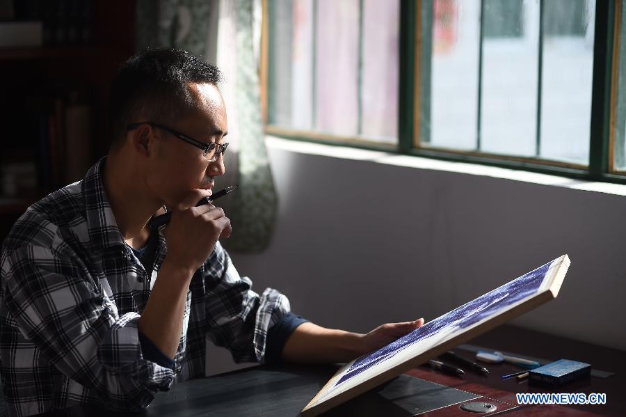 23-year-old painter Liu Kai creates a picture with a ball pen at home in Fushan County, north China's Shanxi Province, March 17, 2015. After graduating from high school, Liu had been working as a farmer and and a migrant worker until he started to pursue his dream of becoming a painter in 2012. His ball pen creations have become popular on the internet after several years of practice. (Xinhua/Yan Yan)