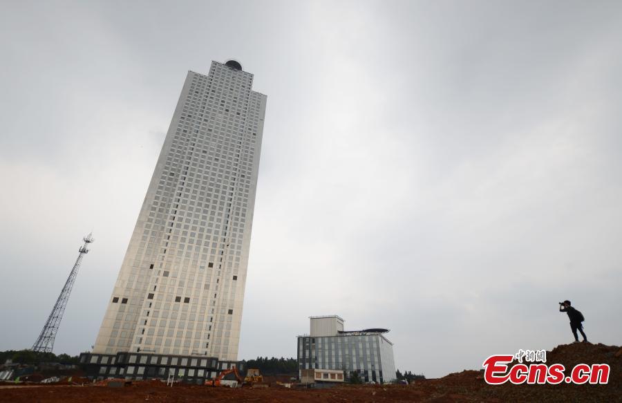 A 57-story skyscraper is in its final stage in Changsha, capital of Central China’s Hunan province, Mar 17, 2015. With its steel frame structure standing tall, the building was finished in just 19 days with 1,200 workers working round-the-clock, said He Youxian, an executive overseeing the construction site. The building can withstand 9 magnitude earthquake. (Photo: China News Service/ Yang Huafeng)