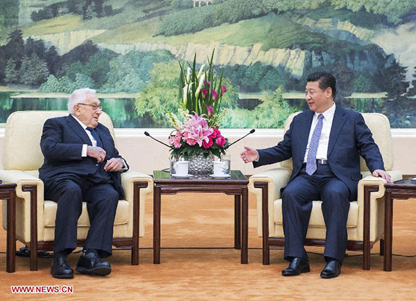 Xi made the remarks as he met with former U.S. Secretary of State Henry Kissinger at the Great Hall of the People in downtown Beijing. Xi praised the veteran diplomat as an "ice-breaker" for China-U.S. diplomacy in the 1970s and for his continuous contributions to the relationship over the past decades.