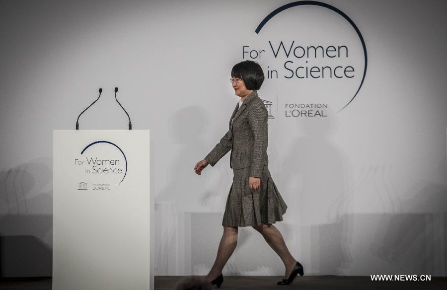 Yi Xie, professor at the University of Science and Technology of China, attends the ceremony of L'Oreal-UNESCO For Women in Science Awards 2015, in Paris, France, March 18, 2015. Yi Xie, professor at the University of Science and Technology of China, was on Wednesday honored with the L'Oreal-UNESCO For Women in Science Awards 2015, together with four other women for their ground-breaking discoveries in physical sciences. (Xinhua/Chen Xiaowei)