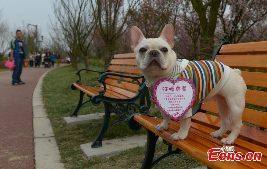 | A French bulldog seeks its soulmate in a park in Chengdu, the capital of Southwest China's Sichuan province, in mid-March. The owner, a young local man, said "Coconut" is six months old and has an independent character. The dog drew much attention from tourists in the park and its pictures also caused a stir after being posted online. (Photo: China News Service /Zhang Lang) |