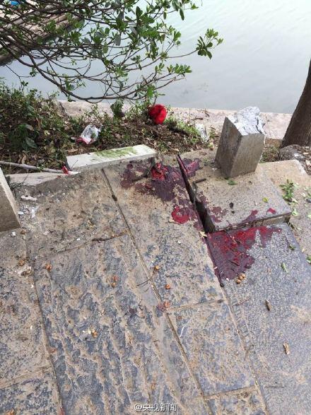 Blood seen on the ground following the incident. [Photo: weibo.com]