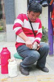 | Tan Juncheng prepares food for his son. (Photo /Sun Peike) |