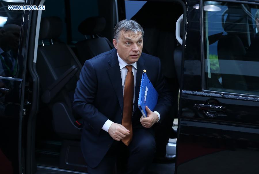 | Hungary's Prime Minister Viktor Orban arrives at the European Council headquarters ahead of the European Union (EU) summit in Brussels, Beglium, March 19, 2015. (Xinhua/Ye Pingfan) |