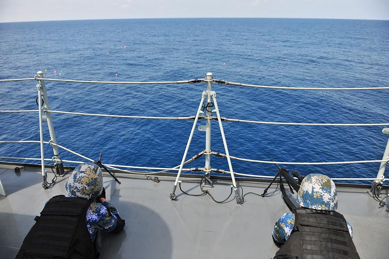 Two members of the special operation team are firing at the floating sea targets. The special operation team of the 19th Chinese naval escort taskforce held the firing training on March 18. Each team member used multi-type guns in rotation such as the heavy machine gun, heavy sniper rifle and howitzer launcher to fire at the floating sea targets. (Photo: Chinamil.com.cn/Xiong Libing)