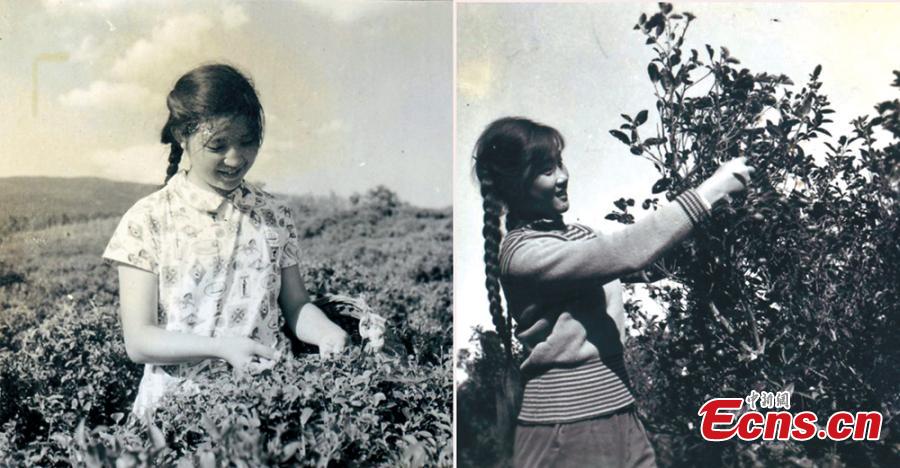 Photos provided by the Sun Yat-sen Mausoleum show that 57 years ago two tea pickers working in the tea gardens of the Sun Yat-sen Mausoleum, Nanjing city, East China’s Jiangsu province. (Photo provided by the Sun Yat-sen Mausoleum)