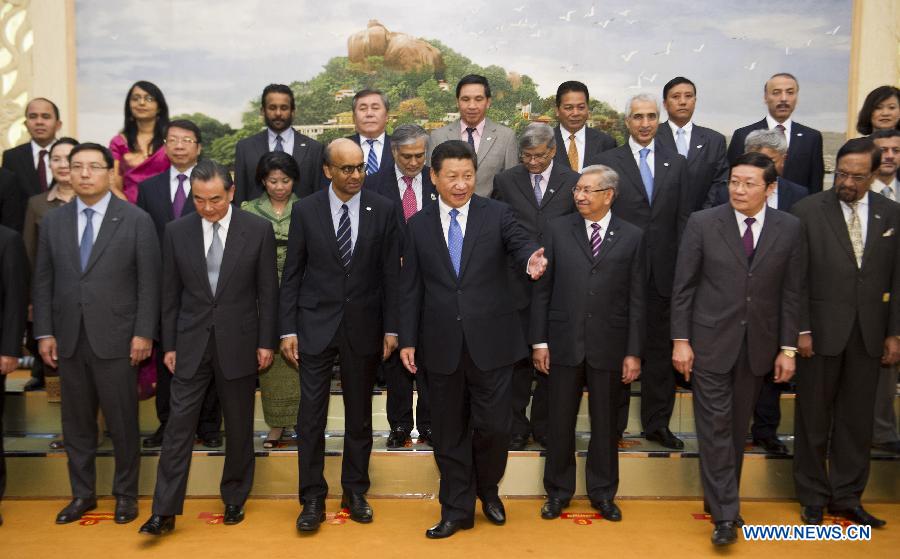 | Chinese President Xi Jinping (C, front) meets with representatives of 21 Asian countries who signed the Memorandum of Understanding on Establishing Asian Infrastructure Investment Bank (AIIB) in Beijing, capital of China, Oct. 24, 2014. (Xinhua/Huang Jingwen) |
