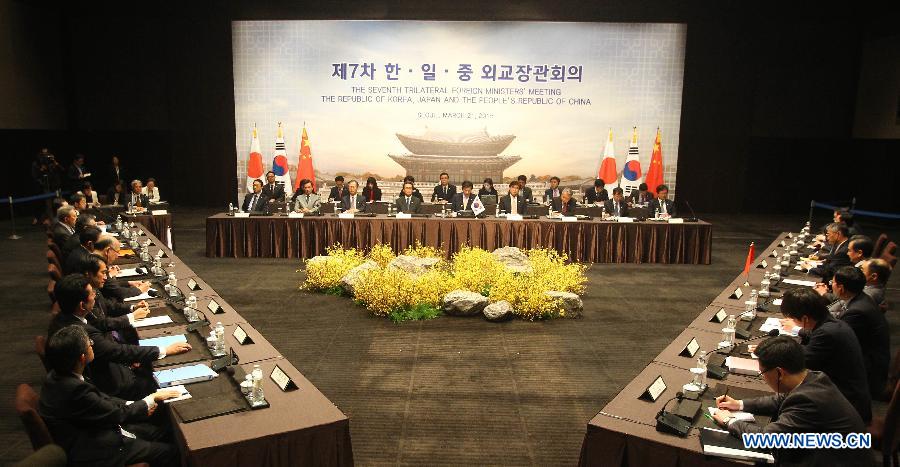 | Participants take part in the 7th Trilateral Foreign Ministers' Meeting of China, South Korea and Japan in Seoul, South Korea, on March 21, 2015. (Xinhua/Yao Qilin) |