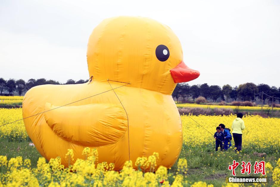 Yellow rubber duck stands in field in E China's Jiangxi Province, March 21, 2015. (Photo: chinanews.com)