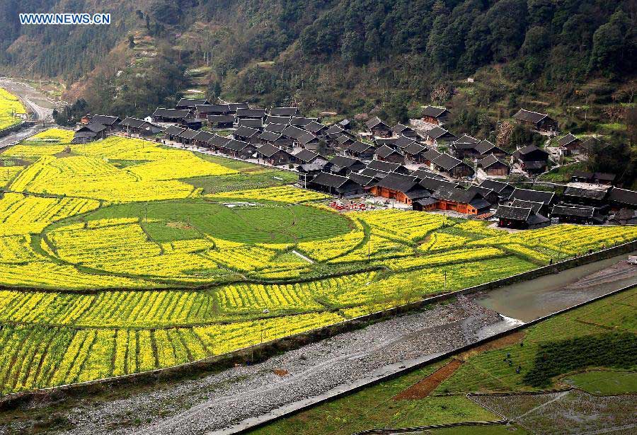 Rape flowers are in full bloom in Hangsha Township of Baojing County, central China's Hunan Privince, March 22, 2015. (Xinhua/Peng Biao)