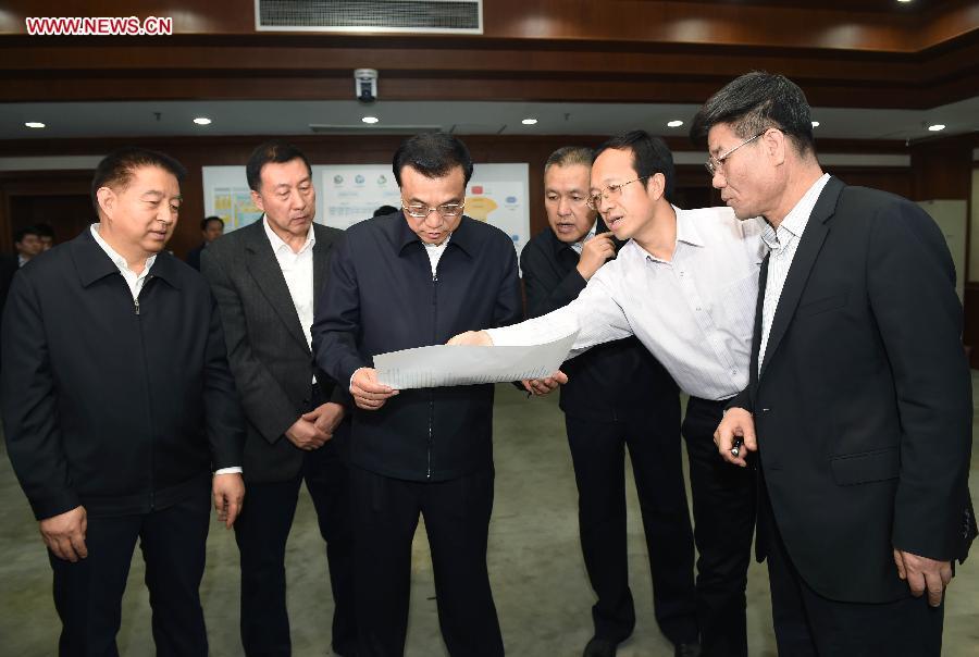 Chinese Premier Li Keqiang (3rd L) inspects at the State Administration for Industry and Commerce of China in Beijing, capital of China, March 20, 2015. (Photo: Xinhua/Rao Aimin)