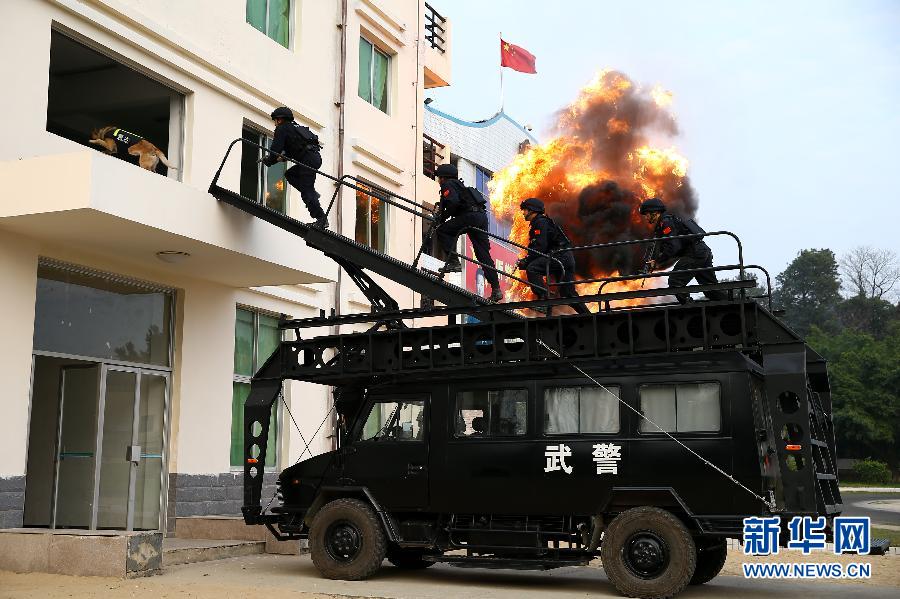 Armed police in southeast China's Fujian Province attend anti-hijacking drill on March 22, 2015. (Xinhua photo)
