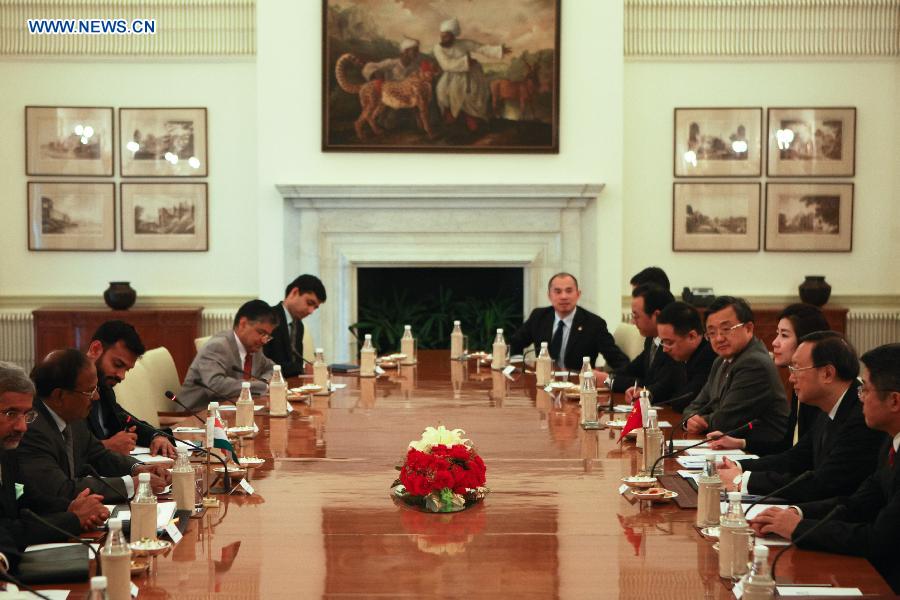 Chinese State Councilor Yang Jiechi (2nd R), who is also Chinese Special Representative on China-India Boundary Question, meets with Indian National Security Advisor Ajit Doval (2nd L) during the 18th round of talks on China-India Boundary Question at Hyderabad House in New Delhi, India, March 23, 2015. (Xinhua/Zheng Huansong)