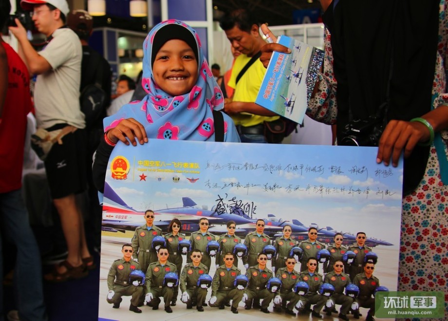 A child is happy to receive the posters of China's Bayi Aerobatic Team. (Global Times/Li Xuan)