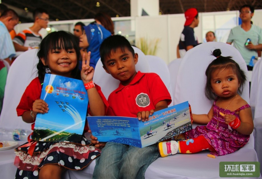 The children are happy to receive the postcards of China's Bayi Aerobatic Team. (Global Times/Li Xuan)