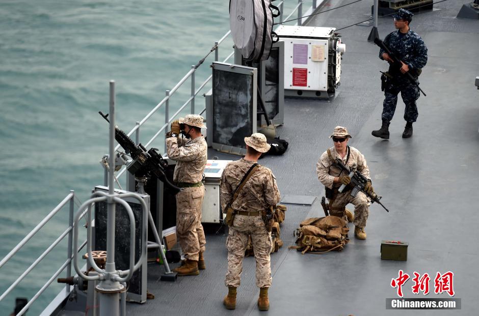 USS Blue Ridge, the command ship of the U.S. Seventh Fleet which anchored in the sea area of the Tsing Ma Bridge in Hong Kong, invites media on board for visit on March 23, 2015. After a six-month maintenance period, the “Blue Ridge” arrived in Hong Kong on March 20. USS Blue Ridge (LCC-19) started service in 1970, and is one of the strongest US Navy command ships. It can cover a battle area up to 124 million square kilometers, 10 times the area of the United States. (CNS/Zhang YU)