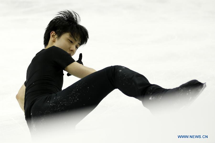 | Yuzuru Hanyu of Japan takes part in the training session before World Figure Skating Championships 2015 at Oriental Sports Center in Shanghai, China on March 24, 2015.(Xinhua/Wang Lili) |