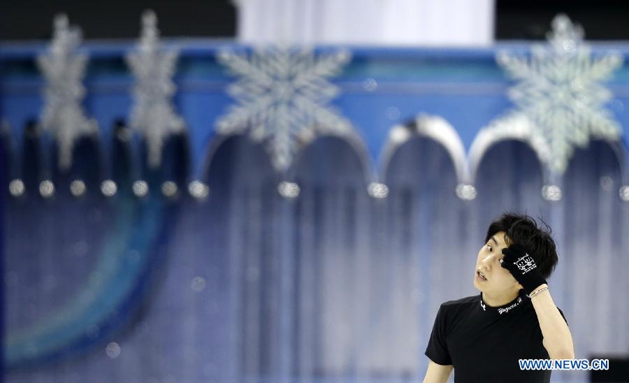 Yuzuru Hanyu of Japan takes part in the training session before World Figure Skating Championships 2015 at Oriental Sports Center in Shanghai, China on March 24, 2015.(Xinhua/Wang Lili)