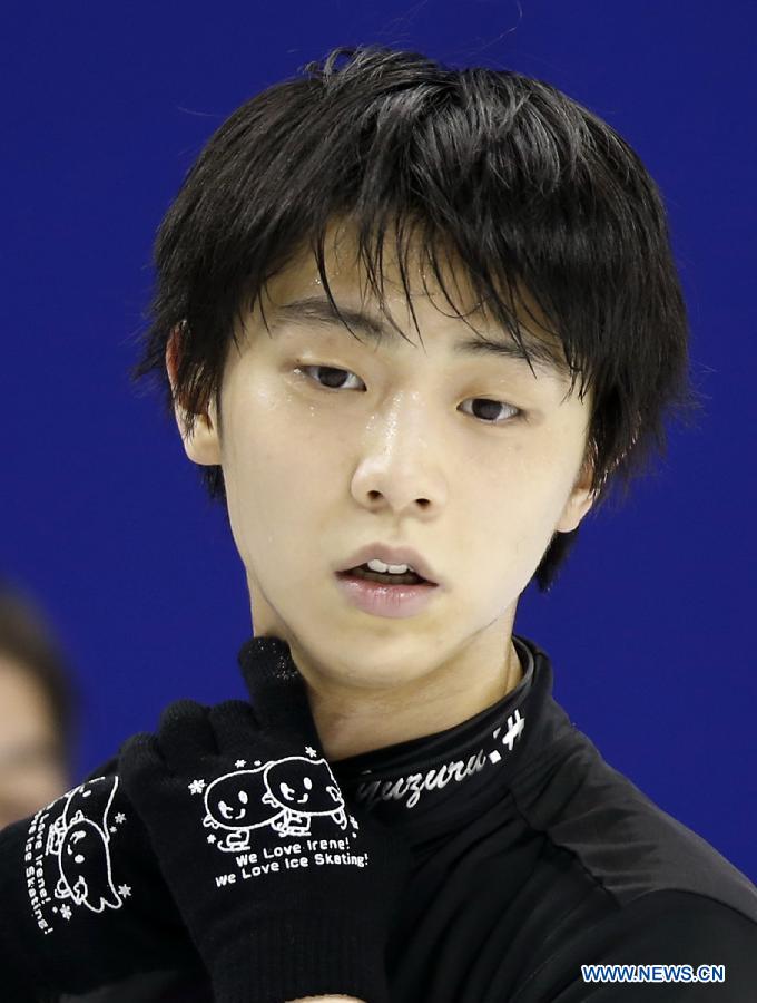 Yuzuru Hanyu of Japan takes part in the training session before World Figure Skating Championships 2015 at Oriental Sports Center in Shanghai, China on March 24, 2015.(Xinhua/Wang Lili)