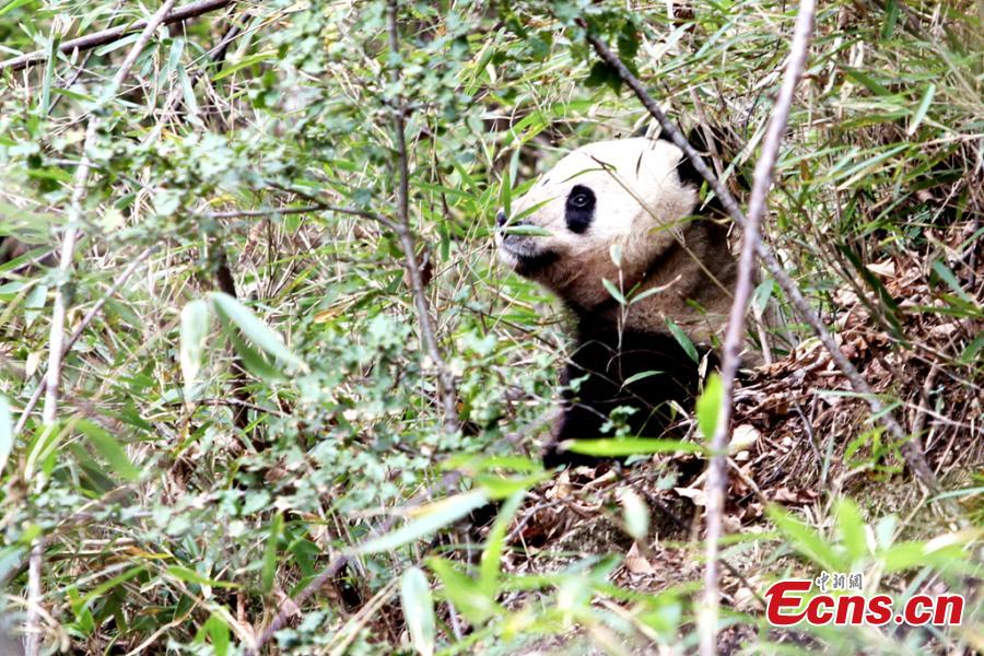 A giant panda eats bamboo at the Foping Nature Reserve in Northwest China’s Shaanxi province. A report of the fourth panda survey in Shaanxi province, released on March 25, shows that there are about 345 wild giant pandas living in the Qinling Mountains area, an increase of 26.4 percent than the third survey. Most pandas live on the southern slope of the middle section of Qinling Mountains. (Photo provided to China News Service)