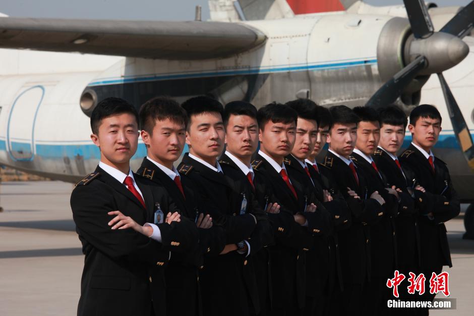 Students of Civil Aviation University of China change new school uniforms on March 24, 2015. The students are from the Flight Techniques College and Cabin Attendant College. (Chinanews/Pang Jie)