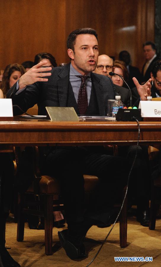 . Actor, filmmaker and founder of Eastern Congo Initiative Ben Affleck testifies before state, foreign operations subcommittee of senate appropriations committee in the hearing on Diplomacy, Development, and National Security, on Capitol Hill in Washington D.C., capital of the United States, March 26, 2015.(Xinhua/Bao Dandan)