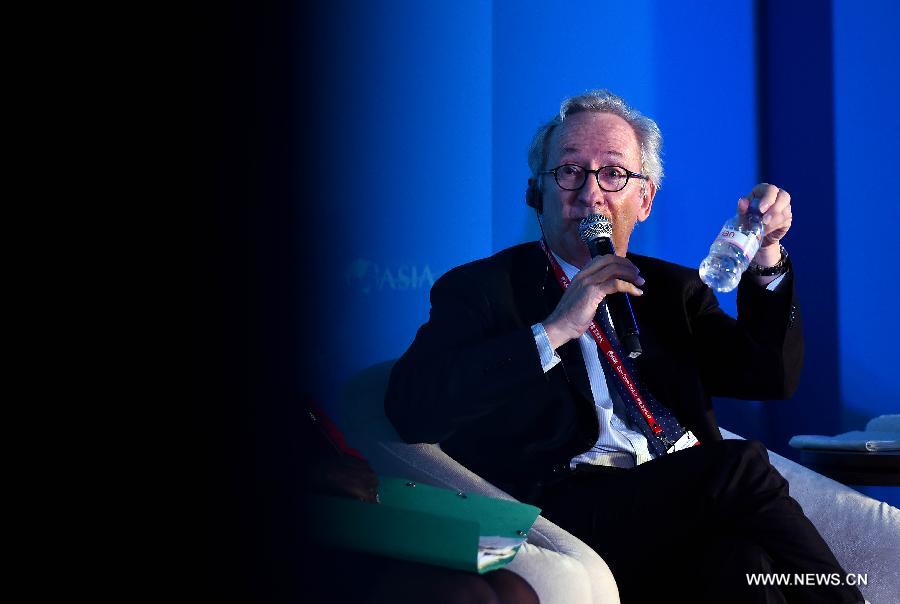 Chairman and CEO of Groupe Danone Franck Riboud speaks at the sub-forum with the theme of "Global Governance for Food Safety" during the 2015 Boao Forum for Asia (BFA) in Boao, south China's Hainan Province, March 27, 2015. (Xinhua/Guo Cheng)