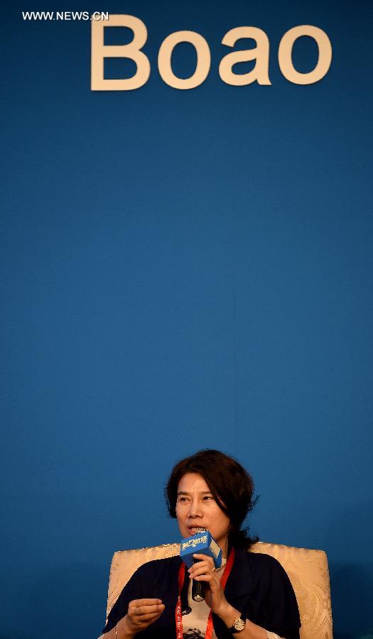 Dong Mingzhu, chairperson of Gree Electric Appliances, speaks at a sub-forum with the theme of "The Other Side of Big Data" during the 2015 Boao Forum for Asia (BFA) in Boao, south China's Hainan Province, March 27, 2015. (Xinhua/Guo Cheng)