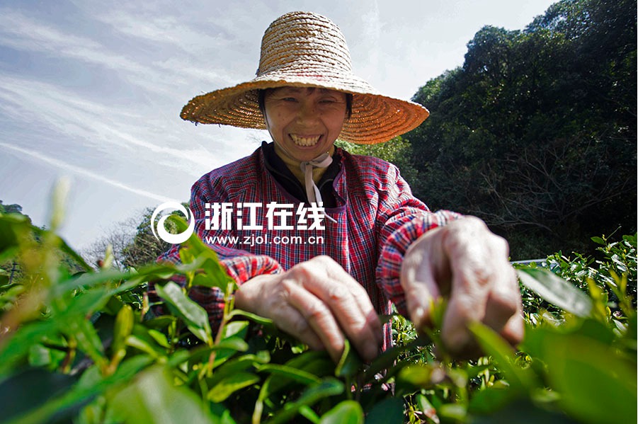 It is the annual season for tea-leaves picking in Meijiawu, Hangzhou. Looking down from above, the boundless green field, golden sunshine, and beautiful tea picking girls in colorful clothes composed an exquisite picture of the spring. (Zhejiang Online/Ni Yanqiang)