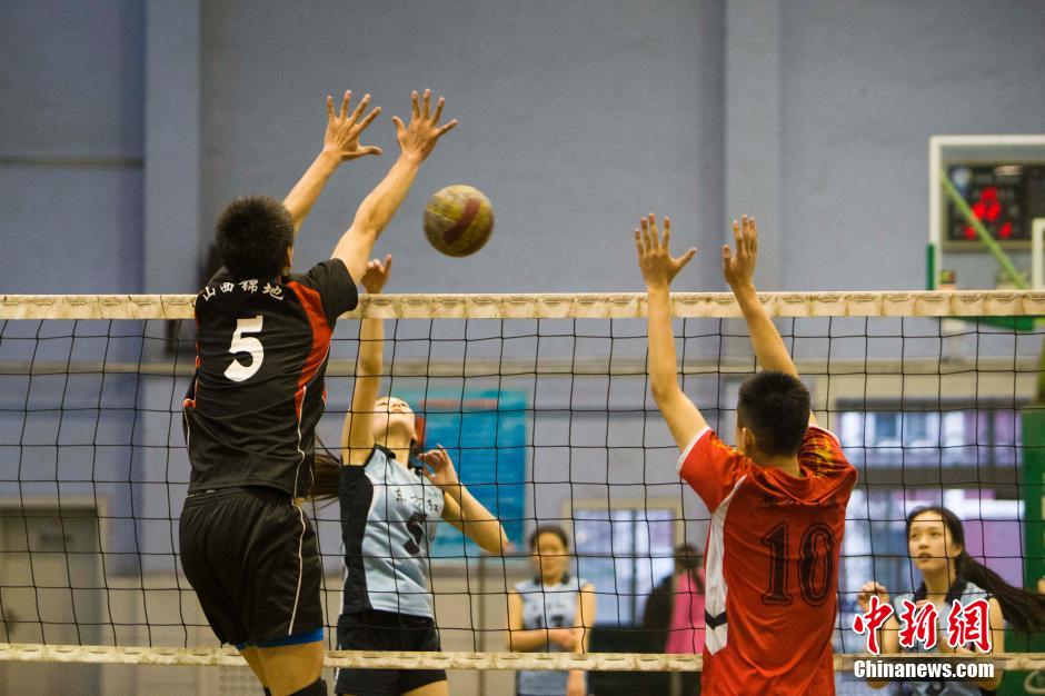 Young athletes of the women volleyball team of Shanxi University choose to spend their time in training in gymnasium instead of shopping and playing. Post-95s Lu Yujie is the team leader and she spends four hours in training with her teammates from Monday to Thursday every week. In August 2014, they won the championship of the second National College Volleyball Competition. (Chinanews.com/Zhang Yun)
