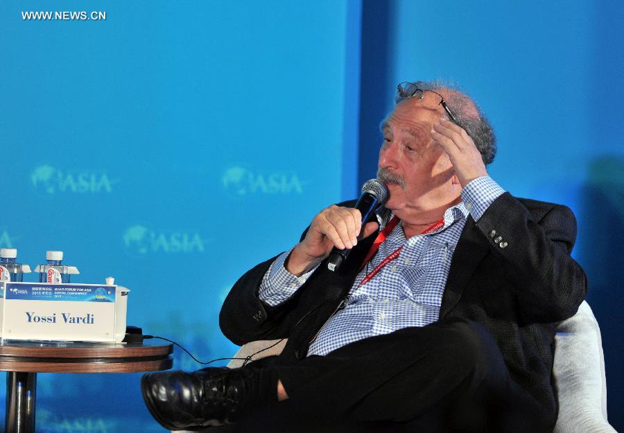 Israeli entrepreneur and investor Yossi Vardi speaks during a sub-forum with the theme of "Entrepreneurs: Born or Made?" at the 2015 Boao Forum for Asia (BFA) in Boao, south China's Hainan Province, March 28, 2015. (Xinhua/Yang Guanyu)