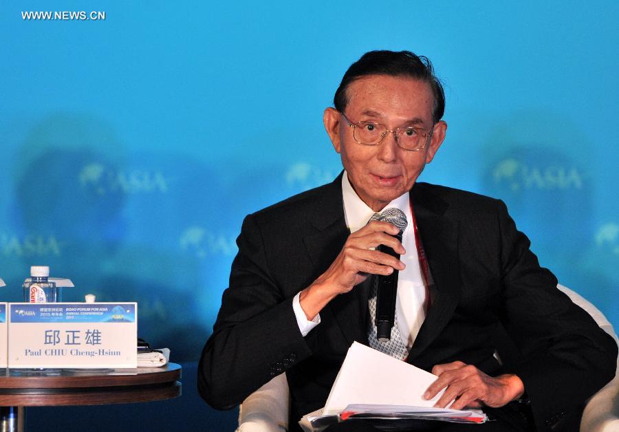 Paul Chiu Cheng-Hsiung, Chairman of Bank SinoPae, speaks at a sub-forum with the theme of "Shadow Banking: The Good and Bad" during the 2015 Boao Forum for Asia (BFA) in Boao, south China's Hainan Province, March 28, 2015. (Xinhua/Yang Guanyu)